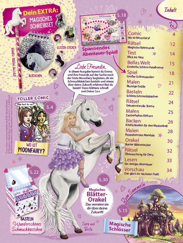 Bella Sara, das fantastische Pferdemagazin, lädt die Leserinnen und Leser in ein Reich voller Fantasie und Magie ein.