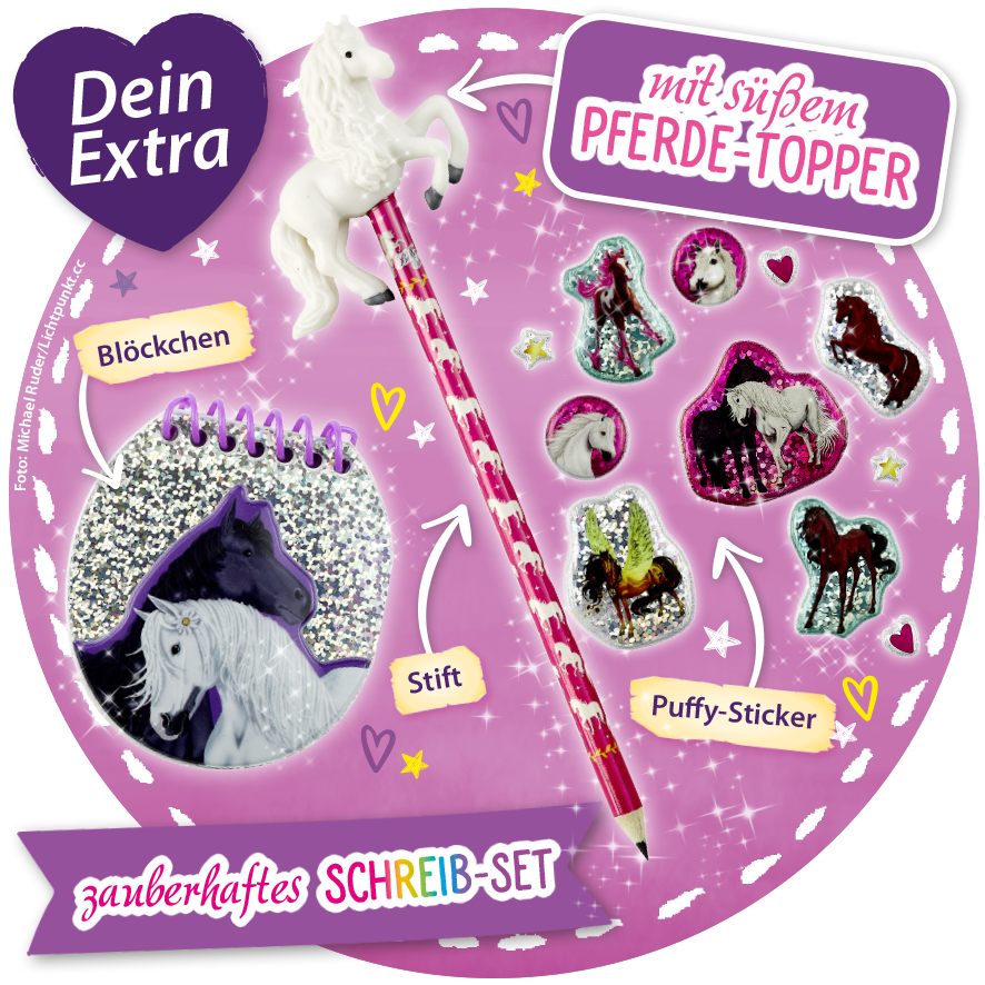 Das zauberhafte Land des hohen Nordens ist die Heimat der magischen Pferde. Hier leben auch das Mädchen Sara und ihre Stute Bella. Zusammen mit ihnen und ihren Freunden erleben die Leserinnen und Leser viele spannende Abenteuer. Neben traumhaften Geschichten bietet das Magazin außerdem fantasievolle Rätsel, liebevoll gestaltete Bastelideen und bezaubernde Poster.