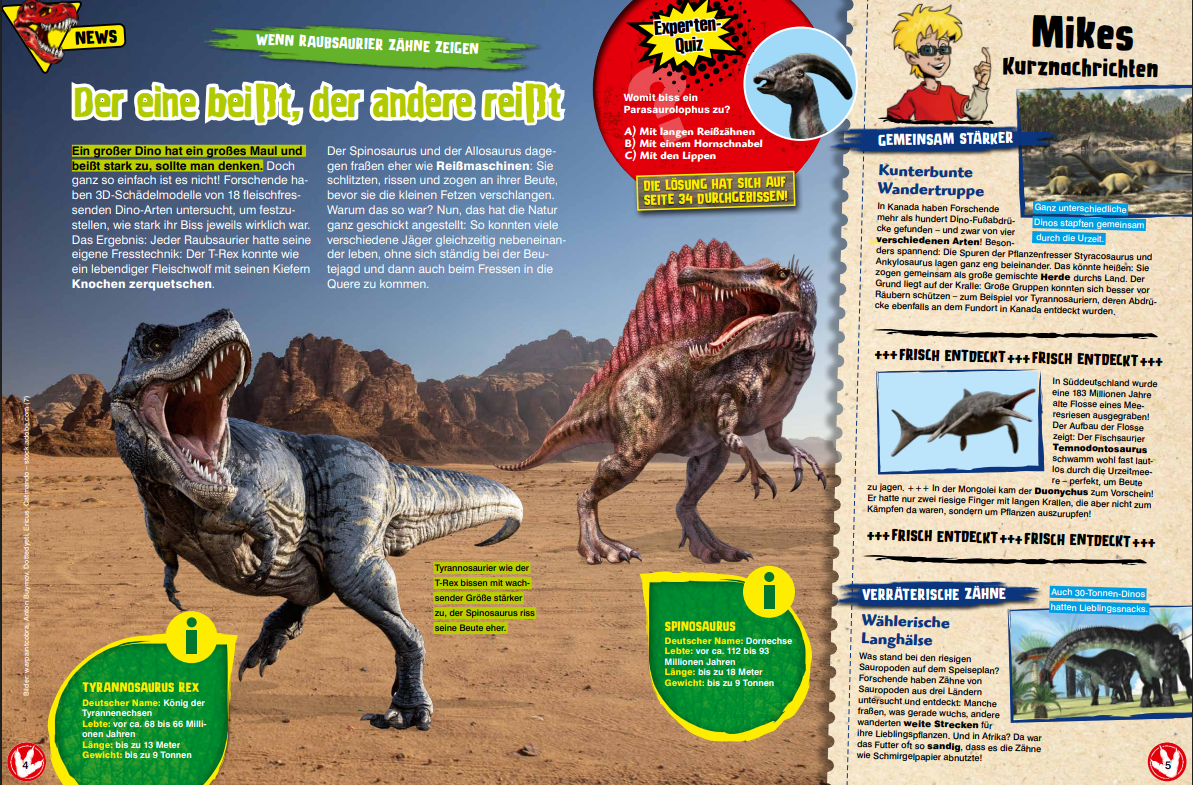 Das zweimonatlich erscheinende Magazin versorgt Jungen und Mädchen im Alter von sechs bis zehn Jahren mit Wissenswertem über die Urzeit-Giganten, spannenden Comics, kniffligen Quizfragen und coolen Postern.