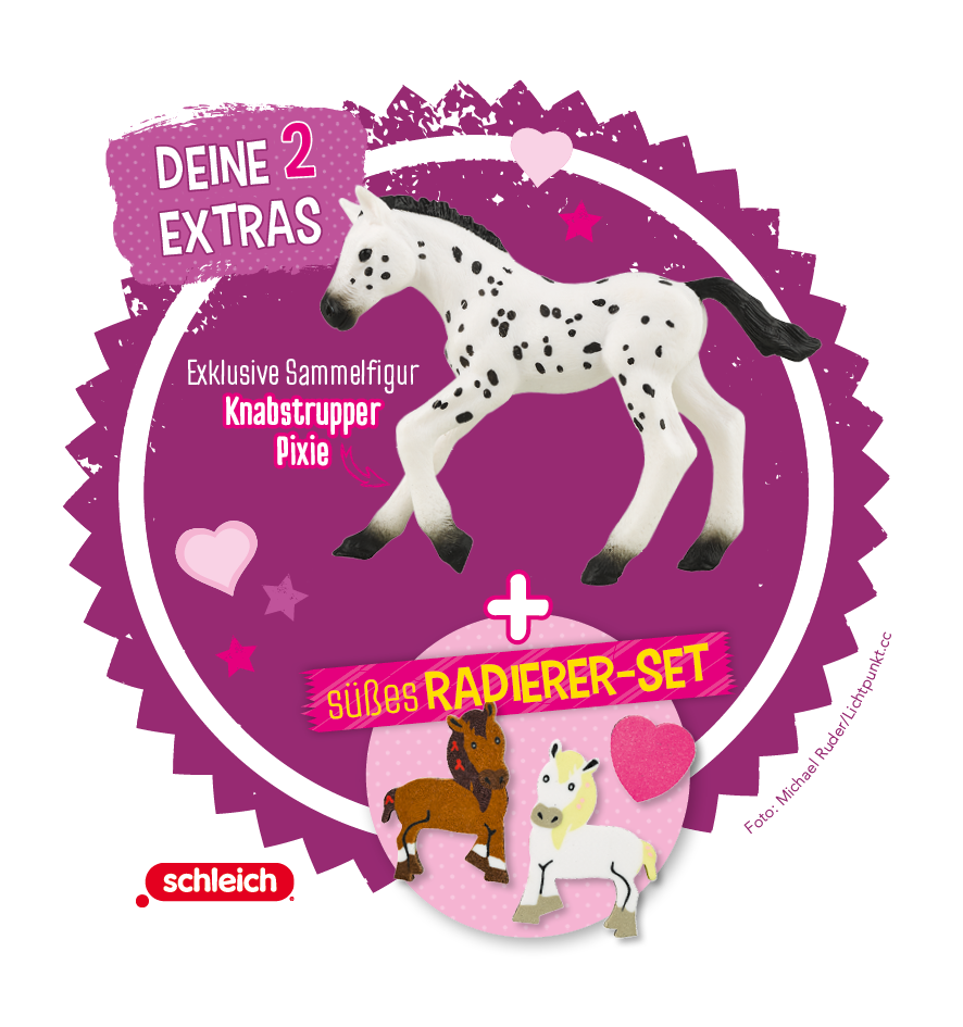 Das absolute Highlight des Magazins ist das Extra: die detailgetreuen und exklusiv bemalten schleich®-Figuren mit passendem Zubehör zum Spielen, Sammeln und Liebhaben!