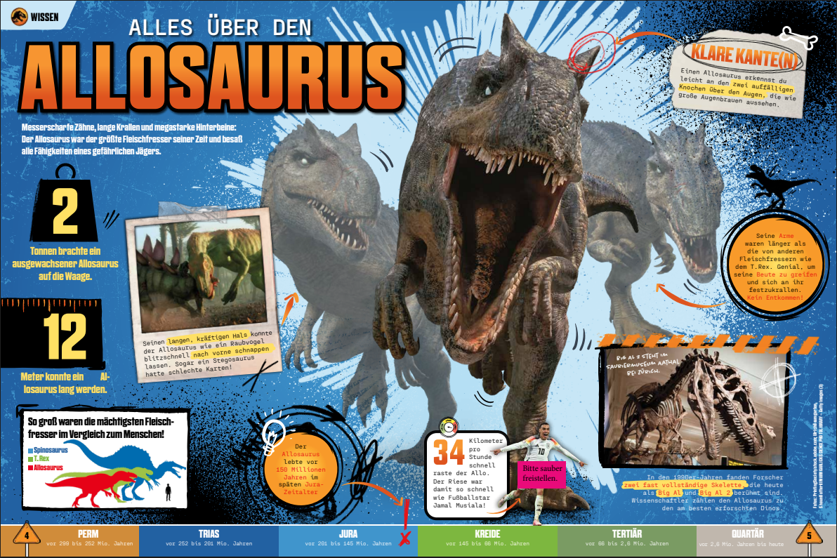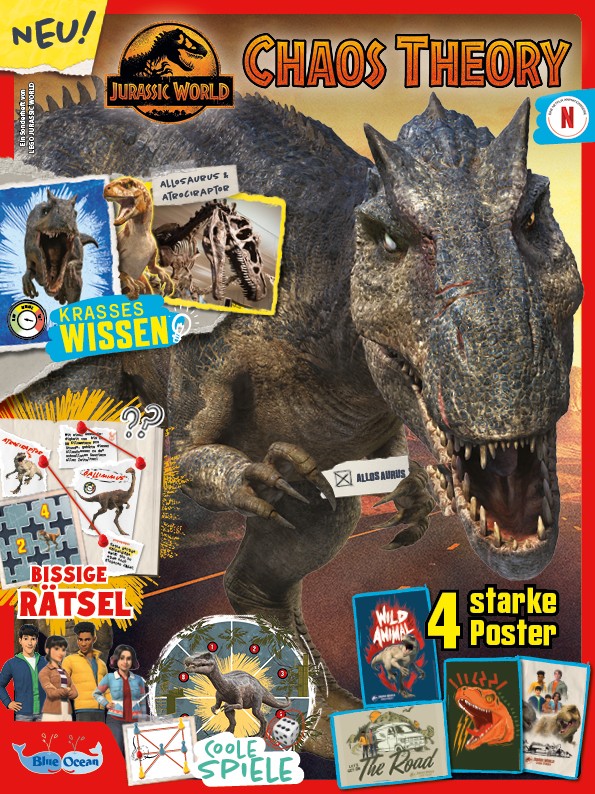 Das offizielle Magazin zur neuen Netflix-Serie „Jurassic World: Chaos Theory“ ist endlich da und sorgt für jede Menge Nervenkitzel bei allen jungen Dino-Fans. Die beliebten Charaktere aus „Jurassic World: Neue Abenteuer“ kehren zurück – doch diesmal stehen sie vor noch gefährlicheren Herausforderungen, neuen Dinosauriern und geheimnisvollen Schauplätzen. Passend zur spannenden neuen Serie bietet das Magazin alles, was das Herz von Abenteurerinnen und Abenteurern zwischen sechs und zwölf Jahren höherschlagen lässt: spannende Geschichten und Infos rund um die Serie, faszinierendes Dinowissen, starke Poster zum Aufhängen sowie lustige Tests und knifflige Quizze zum Mitmachen. Als besonderes Extra liegt dem Heft ein cooles Netzshooter! – ideal für alle, die selbst auf Dino-Expedition gehen wollen.