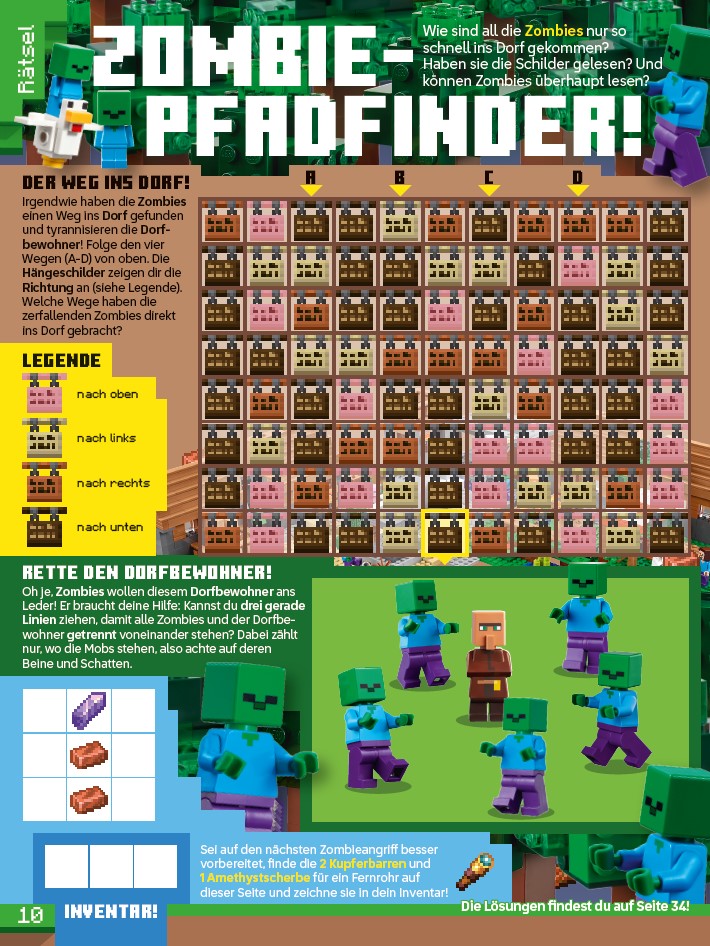 Das neue LEGO® MINECRAFT™ Magazin nimmt dich mit in die atemberaubende Welt von MINECRAFT™. Erlebe die spannenden Abenteuer der einzigartigen Figuren mit - Lass dich aber nicht von den Zombies oder anderen Kreaturen erwischen! Neben einem coolen Comic gibt es in jeder Ausgabe knifflige Rätsel, tolle Poster außerdem ein original LEGO® MINECRAFT™ Spielset.