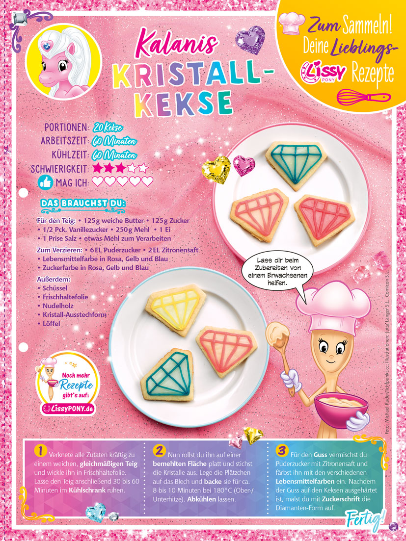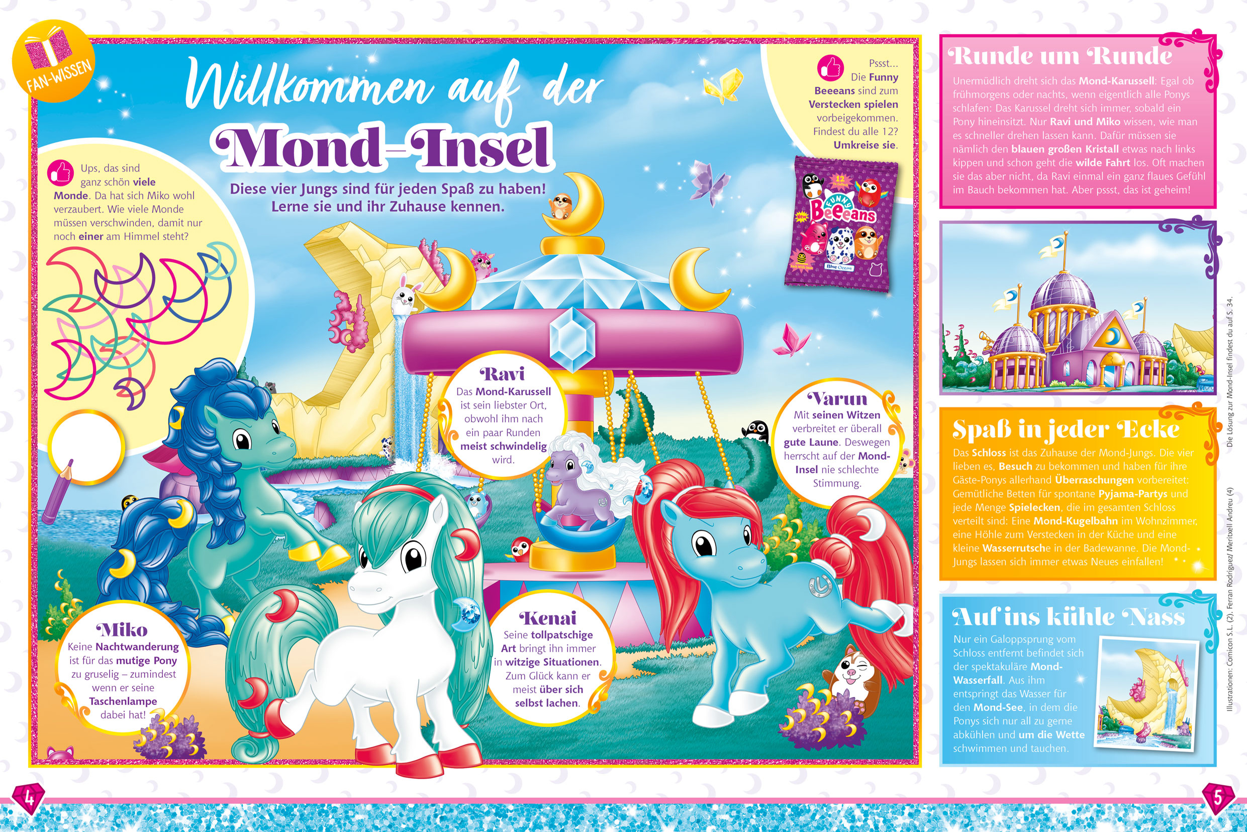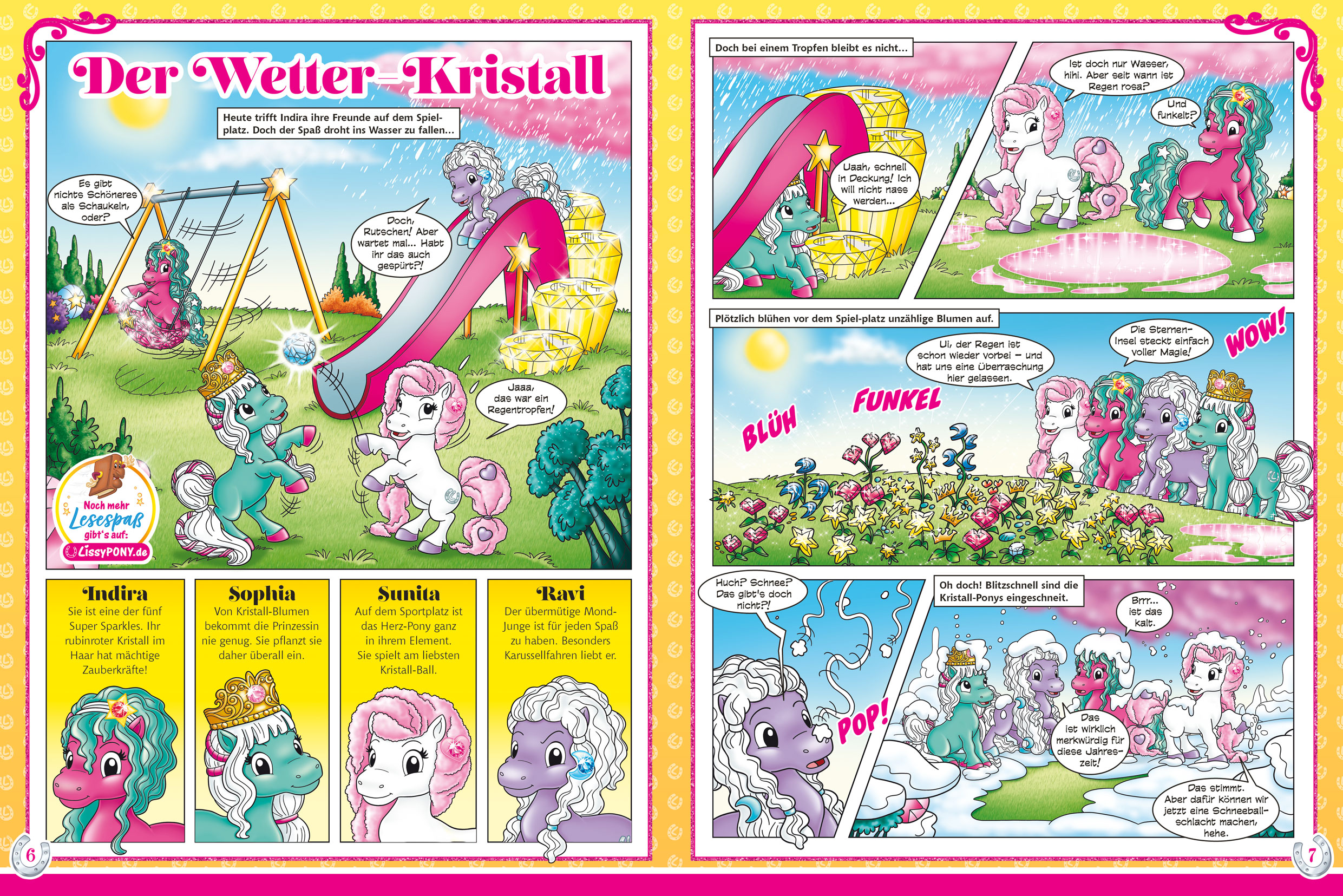 Alle 6 Wochen warten auf euch kunterbunte 36 Seiten, mit denen ihr noch weiter in die traumhafte Welt der Lissy PONYs eintauchen könnt. Mit spannenden Comics, kniffligen Rätseln, tollen Gewinnspielen, vielen Activity-Seiten mit Malvorlagen, Bastelideen und bunten Postern, lässt das Magazin das Herz eines jeden Mädchens höherschlagen. Unentbehrlich sind dabei auch die Steckbriefe mit allen Infos zu den verschiedenen Ponys.