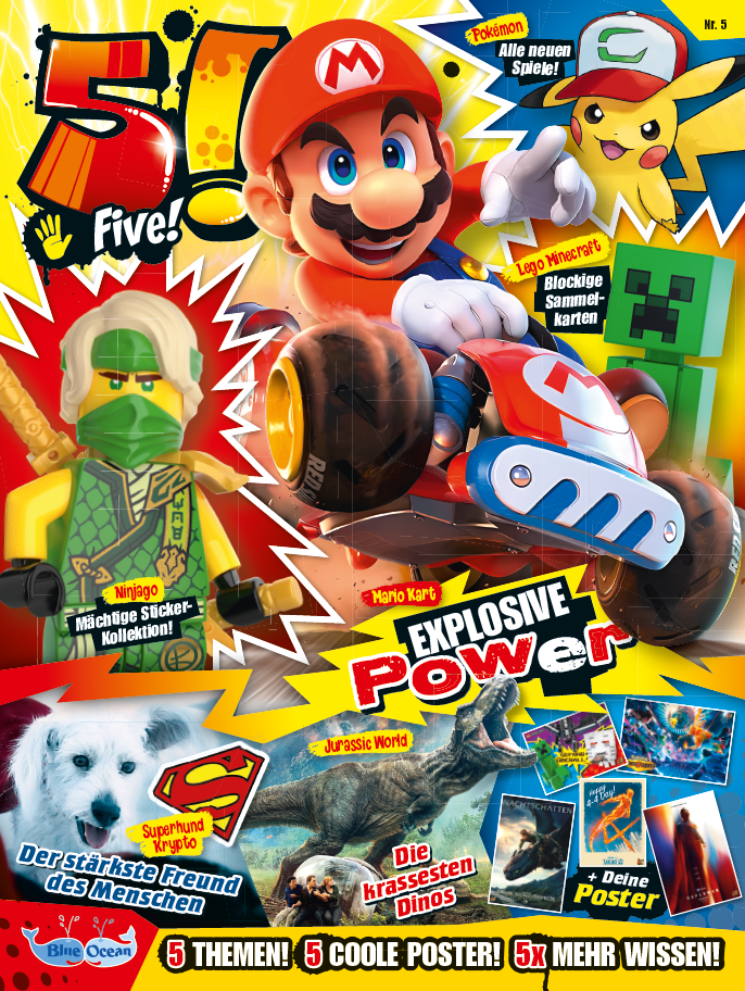 5! ist DAS Magazin für die coolen Kids von heute. Geheimes Insider-Wissen, aktuelle Trendthemenund die 5 TOP-Themen machen das Heft zu einem echten Muss für den Pausenhof! Die Zeitschrift bietet superspannende
