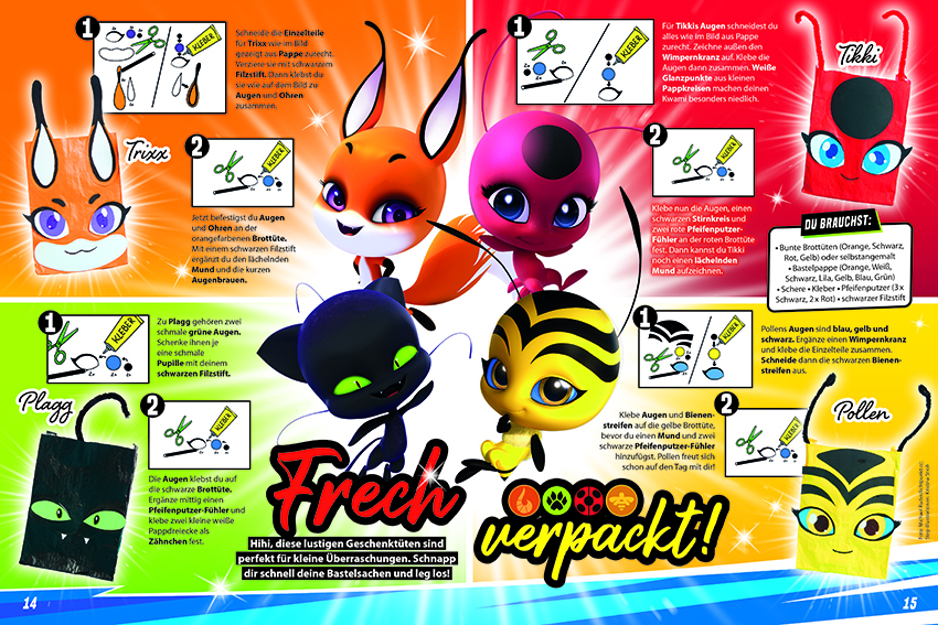 Das Miraculous Magazin nimmt Kids zwischen 5 und 13 Jahren mit in die aufregende Großstadtwelt Paris, in der Ladybug und Cat Noir täglich die Bewohner vor Superschurken beschützen. Es warten brandneue Comics mit spannenden Geschichten zu Marinette, Adrien und der fantastischen Miraculous-Welt, die mit kniffligen Rätseln und heldenstarken Ausmalbildern nacherlebt werden können. Neben leckeren Rezepten gibt es außerdem coole Do-It-Yourself-Projekte, mit denen die Fans noch tiefer in die Welt der Superhelden eintauchen können.