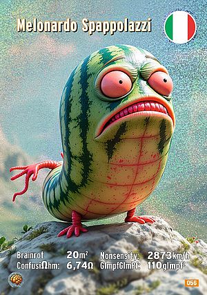 Eine weitere Besonderheit sind die 16 so genannten Scratch & Sniff-Karten. Wie der Name verrät, duften oder riechen diese nach Nuss-Nougat, Vanille, Minze, Zwiebel, Knoblauch oder etwas anderem, wenn man über die Oberfläche der Karte reibt. 16 andere Karten sind besonders schön, weil sie eine Holografie-Oberfläche besitzen. Eine dieser 32 Spezialkarten ist garantiert in jedem Tütchen enthalten. Natürlich kann man mit den neuen Sammelkarten auch spielen, sie tauschen und vergleichen. Dafür verfügt jede Karte über Werte in vier Kategorien, die dem Brainrot nicht entgegenwirken. Es sind: der Faktor Brainrot in Quadratmetern, die Confusiohm in Ohm, die Nonsensity in Stundenkilometern und GlmpfGlmPf, gemessen in glmpf hoch zwei.
