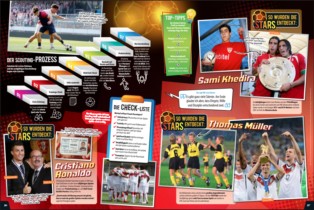 In jeder Ausgabe widmen wir uns den herausragendsten Spielern, den aufstrebendsten Talenten und den größten Vereinen der Welt. Von packenden Spielerporträts bis hin zu exklusiven Interviews erfährst du alles über deine Fußballhelden!