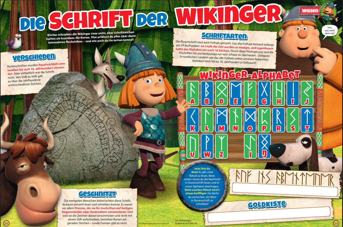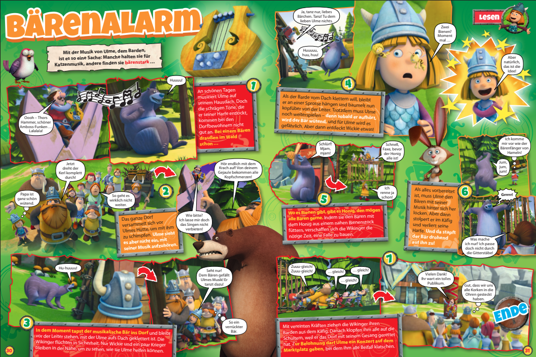 Neben Rätseln, Spielen und Mitmachrubriken bietet das Heft Bastel- und Wissensseiten rund um die Welt der Nordmänner. Der Höhepunkt des Magazins ist der exklusive Comic: Zusammen mit Ylva, Halvar und Wickie erleben Kinder auf acht Seiten eine spannende Geschichte. Ein zum Thema passendes Extra rundet das Lesevergnügen bei jeder Ausgabe ab.