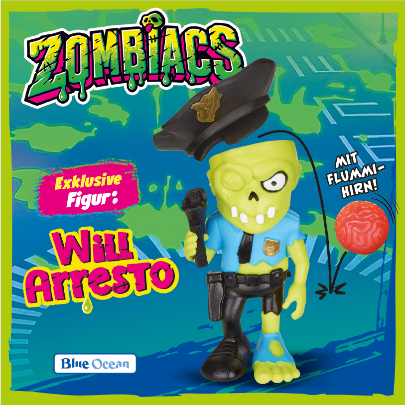 Hinter der Zombiacs-Sammelserie verbirgt sich ein völlig neues Abenteuer: 20 besondere Figuren, die mit gruseligem Charme und einzigartigen Spieleffekten für jede Menge Sammel- und Spielspaß sorgen. Die Serie kombiniert das beliebte Zombie-Thema mit witzigen Charakteren, die sich an Alltagshelden orientieren – vom Wissenschaftler bis zum Skateboarder. Verpackt in eine spannende Hintergrundgeschichte wird ZOMBIACS zu einem Sammelerlebnis, das es so noch nicht gegeben hat.